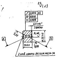 где n - измеренное число полос; λ - длина волны, мкм. Отклонение от плоскостности на всей длине рабочей поверхности пластины не должно превышать 4,5 мкм. 3.4.41. Определение отклонения от параллельности поверхности стеклянной пластины предметного стола направлению движения кареток. Наденьте с помощью кронштейна К1 на оправу объектива визирной системы измерительную головку. Приведите сферический наконечник в контакт со стеклянной пластиной стола. Перемещая каретку в одном направлении, снимите отсчеты по шкале измерительной головки в крайних точках поверяемого участка. Разность отсчетов определяет отклонение от параллельности. Проверку отклонения от параллельности производите не менее чем на трех участках, равномерно распределенных по длине рабочей поверхности предметного стола, в продольном и поперечном направлениях. Отклонение не должно превышать 0,020 мм на длине 200 мм в продольном направлении и 0,015 мм на длине 100 мм в поперечном направлении. Контрольный цилиндрический калибр для поверки измерительных ножей 3.4.42. Определение отклонения от прямолинейности образующих контрольного калибра. Отклонение от прямолинейности определяйте, установив калибр в центрах прибора. К образующим каждого пояска калибра прикладывайте лезвие измерительного ножа, при этом не должно наблюдаться просвета. 3.4.43. Определение радиального биения центров контрольного калибра. Наконечник измерительной головки, присоединенной к объективу визирной системы с помощью кронштейна К1, приведите в контакт с цилиндрической поверхностью пояска калибра. Медленно вращая калибр в центрах вокруг оси, наблюдайте за показаниями измерительной головки, отмечая наибольшее и наименьшее значения. Радиальное биение определяется разностью этих показаний и не должно превышать 0,002 мм. 3.4.44. Определение диаметров рабочих поясков контрольного калибра. Измерьте диаметр каждого пояска в четырех сечениях, перпендикулярных к оси, через 45°. Определите овальность каждого пояска цилиндра как максимальную разность полученных значений. Конусность калибра определяется разностью средних значений результатов измерения диаметров двух крайних поясков. Конусность и овальность не должны превышать 0,0005 мм. Значение диаметра не должно отличаться более чем на ±0,0005 мм от значения, указанного на торце калибра. Определение погрешности прибора 3.4.45. Определение погрешностей прибора при измерениях проекционным методом. 3.4.45.1.