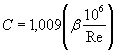 Для труб Вентури с обработанной входной конической частью или со сварной входной конической частью из листовой стали расстояние между осью отверстия для отбора давления, расположенного до трубы Вентури, и плоскостью пересечения поверхностей А и В (или их продолжениями) должно быть равно (0,5 ± 0,05) D. Для всех разновидностей труб Вентури расстояние между плоскостью пересечения поверхностей В и горловины Е (или их продолжениями) и осью отверстий для отбора давления, расположенных в горловине, должно быть равно (0,5 ± 0,02) d. 5.4.8 Площадь свободного сечения кольцевой камеры усреднения или пьезометрического кольца должна быть не менее половины общей площади отверстий отбора. Рекомендуется применять кольцевые камеры или пьезометрические кольца, площадь которых в два раза больше указанной, если труба Вентури установлена после МС, создающих асимметричную деформацию эпюры скоростей потока. 5.5 Коэффициент истечения5.5.1 Ограничения по применениюНезависимо от разновидности трубы Вентури необходимо избегать одновременного сочетания крайних допускаемых значений D, β и Re. Вне пределов, определенных в 5.1.2, 5.1.3 и 5.1.4 для D, β и Re, трубу Вентури можно применять только после определения ее коэффициента истечения в условиях, соответствующих условиям ее эксплуатации. При применении трубы Вентури для измерения расхода газа высокого давления (р ≥ 1 МПа) рекомендуется ее градуировка при рабочем давлении и числах Re, соответствующих условиям эксплуатации. Трубы Вентури применяют на ИТ, для которых допускают широкий диапазон значений Ra/D, без введения поправочного коэффициента, учитывающего шероховатость внутренней поверхности ИТ (см. 6.4.2). 5.5.2 Коэффициент истечения трубы Вентури с литой (без обработки) входной конической частьюКоэффициент истечения трубы Вентури с литой (без обработки) входной конической частью рассчитывают по формулам: С = 0,991 - 0,0014 - 106/Re npи 4∙104 ≤ Re < 2∙105; (5.1) С = 0,984 при Re ≥ 2∙105. (5.2) 5.5.3 Коэффициент истечения трубы Вентури с обработанной входной конической частьюКоэффициент истечения труб Вентури с обработанной входной конической частью рассчитывают по формулам: