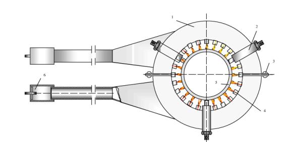 2.2 Для сварки в монтажных условиях рекомендуется использовать электроды на железоникелевой и никелевой основе. Марки и характеристики рекомендуемых электродов приведены в таблице 3. 2.3 По согласованию с головным институтом ОАО «НПО ПКТИ им. Ползунова» (г. Санкт-Петербург) допускается применение других марок электродов, обеспечивающих возможность сварки в потолочном положении и получение необходимых характеристик сварного соединения. 2.4 Для монтажа трубопроводов применяются фасонные части из высокопрочного чугуна, изготовленные согласно ТУ 1461-065-50254094-2004. 2.5 В сварных соединениях элементов из разнородных материалов могут применяться детали (фланцы, трубы) из низкоуглеродистой конструкционной стали, поставляемых по ГОСТ 10705-80, ГОСТ 1050-88. 3. Квалификация сварщиков для допуска к сварке трубопроводов3.1 К прихватке и сварке трубопроводов из высокопрочного чугуна допускаются сварщики после дополнительного обучения и аттестации по специальной программе. 3.2 Независимо от наличия соответствующего удостоверения сварщики должны перед началом работы заварить один контрольный образец в неповоротном положении. Качество образца проверяется визуальным контролем и исследованием макрошлифов. 3.3 Из контрольного образца должны быть вырезаны не менее двух образцов из потолочного и двух образцов из вертикального положения сварки. 3.4 Схема вырезки образцов для изготовления макрошлифов приведена на рисунке 2. 3.5 Результаты визуального контроля должны удовлетворять п.5.16 СНиП 3.05.03-85. Тепловые сети. Результаты исследований макрошлифов считаются удовлетворительными, если обнаруженные дефекты не превышают размеры, указанные в таблице 3 СНиП 3.05.03-85 «Тепловые сети». 3.6 В случае получения неудовлетворительных результатов контроля качества пробного стыка (при надлежащем качестве сварочных материалов, установленном предварительной проверкой) сварщик к работе не допускается. Сварщик может быть допущен к сварке трубопроводов только после дополнительной практической подготовки и получения положительных результатов при сварке пробных стыков, но не ранее чем через 10 дней с момента отстранения от работы. 4. Сварочное оборудование4.1 Для ручной дуговой сварки трубопроводов из высокопрочного чугуна рекомендуется применять источники постоянного тока с крутопадающей характеристикой, например, выпрямители типа ВДУ-506, ВД-300, а также инверторные источники питания дуги, например, ВДУЧ-200, ФЕБ-350М и др. 4.2 Для подогрева и термической обработки сварных соединений на монтаже рекомендуется применять кольцевые воздушно-пропановые горелки (рис. 3). Рис. 2 Схема вырезки макрошлифов из контрольного образца сваренного в неповоротном положении. 1. Корпус горелки. 2. Центратор. 3. Замок. 4. Сопло. 5. Свариваемая труба. 6. Инжекторный узел Рисунок 3. Устройство пропаново-воздушной кольцевой горелки. 5. Подготовка и сборка деталей под сварку5.1 Резка труб и снятие фасок должны производиться механическим способом шлифмашинкой с абразивным армированным кругом. 5.2 Подготовка кромок труб под сварку приведена в таблице 4. 5.3 Кромки стыкуемых деталей и прилегающие к ним поверхности (снаружи и внутри) перед сваркой должны зачищаться до металлического блеска для удаления грязи, масла и ржавчины на ширине не менее 10 мм от торца. 5.4 Сборка элементов трубопроводов под сварку может п