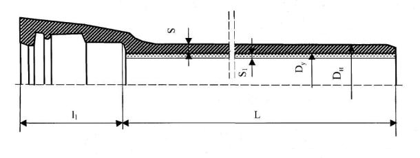 заказу потребителя трубы могут быть изготовлены любой длины от 1 до При поставке труб одной мерной длины допускается поставка до 10% труб другой мерной длины с определением общей длины поставляемых труб путем суммирования эффективных длин труб. 4.10 Предельные отклонения по толщине стенки трубы (S) и по наружному диаметру цилиндрической части (DH) не должны превышать величин, указанных в таблицах А.1-А.6 и рисунках А.1-А.6 (приложение А). Положительный допуск на величину толщины стенки трубы ограничивается допуском на массу трубы. 4.11 Отклонение фактической массы труб от теоретической не должно превышать ±10%. Примечание - Допускается превышение максимальной массы трубы при соблюдении всех остальных требований настоящих технических условий. 4.12 Трубы под соединение «Универсал» и «Тайтон» поставляются потребителю в комплекте с уплотнительными резиновыми кольцами. Трубы под соединение «ВРС» поставляются потребителю в комплекте с уплотнительными резиновыми кольцами и стопорами. Состав материала и свойства уплотнительных резиновых колец регламентируются технической документацией предприятия-изготовителя. 4.13 Торец гладкого конца трубы должен иметь с наружной стороны фаску для монтажа и демонтажа труб. 4.14 Наружная поверхность труб, поставляемых с покрытием, должна быть защищена битумным лаком по ГОСТ 5631 или другим нетоксичным материалом. 4.15 На внутреннюю поверхность труб может быть нанесено внутреннее цементно-песчаное покрытие, состоящее из смеси цемента, песка и воды. В случае нанесения на внутреннюю поверхность труб цементно-песчаного покрытия его оптимальная толщина (S1) должна соответствовать величинам, указанным в таблицах 2, 4, 6. На поверхности внутреннего цементно-песчаного покрытия допускаются шероховатости, трещины, наплывы металла и покрытия, а также местное отслоение и обрушение покрытия, обусловленное способом нанесения этого покрытия и не влияющее на эксплуатационные характеристики труб. 4.16 Допускается ремонт поврежденных или некачественных участков цементно-песчаного покрытия. 4.17 На внутреннюю поверхность и торцевую часть раструба труб наносится краска желтого цвета. 5 Правила приемки5.1 Трубы и стопора предъявляются к приемке партиями. Количество проверяемых в партии отливок устанавливается предприятием-изготовителем. 5.2 Трубы из ВЧШГ подвергаются следующим видам контроля: - визуальный контроль; - измерительный контроль; - неразрушающий контроль; - контроль твердости; - контроль механических свойств. 5.3 Осмотру, измерительному контролю и гидроиспытанию должна быть подвергнута каждая труба. 5.4 Проверка твердости и механических свойств металла труб проводится на образцах, изготовленных из любой трубы в проверяемой партии. Проверка твердости и механических свойств металла стопоров проводится на одном изделии от партии или отдельно отлитом образце. 5.5 При получении неудовлетворительных результатов испытаний хотя бы по одному из показателей, производятся повторные испытания по этому показателю удвоенного количества образцов взятых от той же партии. Результаты повторных испытаний распространяются на всю партию. Допускается в случае неудовлетворительных результатов повторных испытаний подвергать каждое изделие поштучному контролю по невыполняемому показателю. 6 Методы испытаний6.1 Для контроля св
