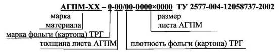 * - ширину листа А1 им определяет ширина листа армирующего материала. 1.3.1. Допускается изготовление листов АГПМ других размеров по согласованию с заказчиком. 1.4. Принято следующее обозначение АГПМ в технической документации: