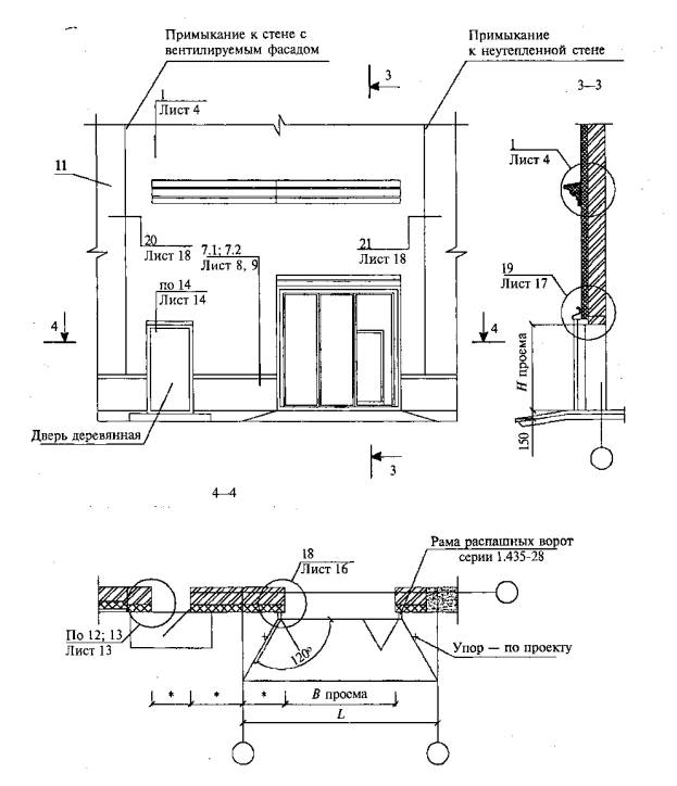 Схема 7.2 - Размещение противопожарных рассечек вокруг проемов и в зоне примыкания - система теплоизоляции должна начинаться на нижней и заканчиваться на верхней отметках ее применения сплошной рассечкой из вышеуказанных негорючих минераловатных плит по всему периметру здания; высота поперечного сечения рассечек - не менее 150 мм (см. схему 7.3); в разновысоких зданиях вышеуказанные «концевые» рассечки должны устанавливаться в уровнях нижней и верхней отметок применения системы теплоизоляции на фасаде конкретной секции здания, по всей длине фасада секции, а также в уровне нижнего торца системы теплоизоляции вышележащей секции над примыкающей кровлей по всей длине примыкания; - при применении системы теплоизоляции от уровня отмостки здания допускается устанавливать (поднимать над нижним торцом системы) нижнюю «концевую» рассечку из негорючих минераловатных плит на высоту не более 0,75 м, считая от уровня отмостки здания; - на «глухих» (без проемов) стенах здания промежуточные поэтажные рассечки из негорючих минераловатных плит, за исключением располагаемой на высоте 2,5 - 3 м от нижней отметки применения системы на этих участках, допускается не устанавливать (см. схему 7.3) при условии, что расстояние до ближайшего здания составляет не менее 10 м;