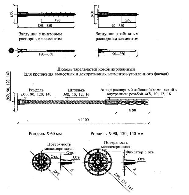 5.2 Дюбели для крепления теплоизоляционных плитОбщие требования к дюбелям для крепления теплоизоляционных плит приведены в таблице 5.3.