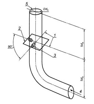 Вышеуказанные требования обычно выполняют в секциях газохода, где длина прямолинейного участка выше по потоку от плоскости отбора проб составляет, по крайней мере, пять гидравлических диаметров, ниже по потоку от нее - два гидравлических диаметра (или пять гидравлических диаметров от верха трубы). Поэтому настоятельно рекомендуется, чтобы места отбора проб выбирались соответственно.