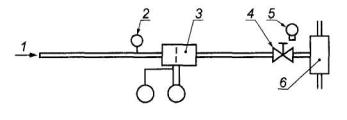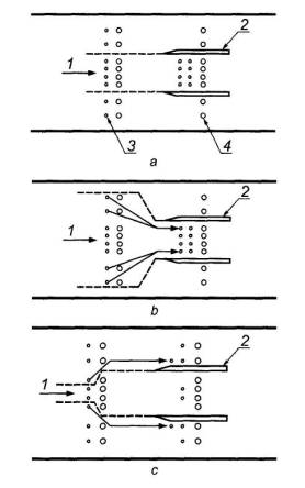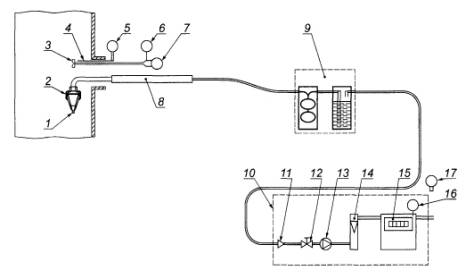 1 - линии отбора проб; 2 - плоскость отбора проб; 3 - порт доступа к потоку; 4 - поток; 5 - верхняя часть газохода