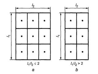 Рисунок В.3 - Расположение точек отбора проб в прямоугольном и квадратном газоходах