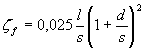 где ζ1 -форм-фактор со стороны входа глушителя; для прямоугольных пластин ζ1 =1; для полукруглого входного профиля ζ1 =0,1; ζ2 - форм-фактор со стороны выхода глушителя; для прямоугольных пластин ζ2 =1; для полукруглого выходного профиля ζ2 = 0,7 (слабое влияние); s - ширина воздуховода, м; d - толщина пластины, м. В целом потери давления увеличиваются как квадрат отношения d/s. Фрикционные потери увеличиваются с ростом отношения длины пластины l к поперечному гидравлическому сечению, которое пропорционально ширине воздуховода s. Для звукопоглощающих пластин с перфорированным покрытием или без него коэффициент потери давления ζf, обусловленный трением, можно оценить по формуле