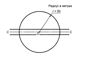 Рисунок 1 - Место испытаний Это условие считается выполненным, если: a) в радиусе до 50м от центра испытательной трассы нет больших звукоотражающих объектов, таких как ограждения, возвышения, путепроводы или здания; b) на поверхности испытательной трассы нет каких-либо звукопоглощающих материалов (рыхлого снега или золы); c) вблизи микрофона нет препятствий, влияющих на акустическое поле, а между микрофоном и источником шума нет людей; d) лицо, проводящее измерения, находится в таком месте, откуда невозможно оказывать влияние на показания шумомера. 6.2. Метеорологические условия Измерения не проводят при неблагоприятных погодных условиях и порывистом ветре. Скорость ветра на высоте микрофона не должна превышать 5м/с. 6.3. Фоновый шум Фоновый шум, включая шум ветра у микрофона, должен быть, по меньшей мере, на 10 дБА ниже шума испытуемого автомобиля. 7. Методика испытаний7.1. Местоположения микрофонов Расстояние от микрофонов до осевой линии СС (см. рисунок 2) должно быть (7,5 ± 0,1) м. Микрофоны должны быть установлены на высоте (1,20 + 0,05) м. Ось микрофона, предназначенного для измерений в свободном звуковом поле, должна быть горизонтальна и перпендикулярна к осевой линии СС, если изготовителем шумомера не указано другое.