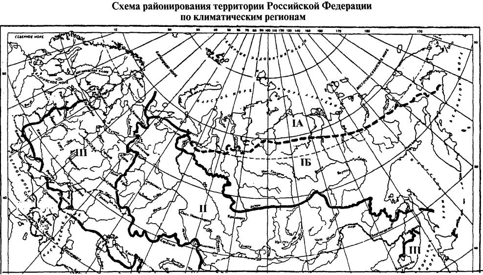 * наиболее значимые показатели; ** снижение работоспособности: возможно снижение показателя координации движений до 20%. Приложение 2Климатические регионы (пояса) России