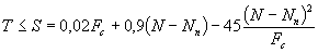 Здесь T(T) - сдвигающее усилие в шве, отнесенное к одному высокопрочному болту от расчетных (при проверке прочности) нагрузок определяемое согласно рекомендациям Технических условий СН 200-62 и Технических указаний ВСН 92-63; S(Т) - расчетное сопротивление (расчетная несущая способность) одного высокопрочного болта на сдвиг в шве объединения; N(t) - номинальное начальное усилие натяжения болта, принимаемое равным 20 т для болта М22 и 24 т для болта М24; Nn(T) - потери натяжения от ползучести бетона и раствора и от других факторов, принимаемые согласно п. 23; f - расчетный коэффициент трения, принимаемый равным 0,60 - в швах, омоноличенных цементным раствором, передающим усилия обжатия; 0,45 - в сухих швах при трении батона по стали, а также в условиях временной эксплуатации при трении дерева или фанеры по стали и бетону; Fc (cм2) - площадь склеивания, отнесенная к одному высокопрочному болту. примечание. В приведенных формулах учтен общий коэффициент условий работы для мостов m1 = 0,9. 22. При расчете соединений на выносливость величину расчетного сопротивления - S, определенную по указаниям п. 21, умножают на понижающий коэффициент Kв = 0,6, а усилив Т определяет от нормативных нагрузок, учитываемых в расчетах на выносливость. 23. Потери усилий натяжения болтов от ползучести бетона и раствора и от других факторов учитывают по следующей формуле (одинаковой для соединений всех типов): Nn = 0,001σn·Fб (т), где σn (кг/см2 ) - потери напряжений в болтах Fб, (см2) - площадь сечения стержня болта (без учета ослабления сечения резьбой). При этом σn = ηt=∞σб·Ен, где Ен = 2 × 106 кг/см2 - модуль упругости стали марки 40Х ηt=∞=ηt=∞·ξ1·ξ2·ξ3·ξ4 - расчетная величина конечной меры ползучести; ηt=∞ - исходная величина конечной меры ползучести, принимаемая по таблице настоящих рекомендаций; ξ1; ξ2; ξ3; ξ4 - поправочные коэффициенты, определяемые по приложению 15 к Техническим условиям СН 200-62;