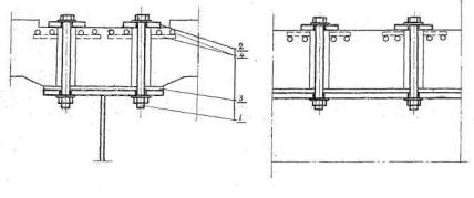 институт транспортного РЕКОМЕНДАЦИИ Москва 1968 г Рекомендации по проектированию соединений на высокопрочных: болтах в прикреплениях железобетонных плит к стальным балкам разработаны лабораториями металлических мостов и постройки мостов (авторы к.т.н. ВЕЙНБЛАТ Е.М. и к.т.н. СТРЕЛЕЦКИЙ Н.Н.) в развитие Технических условий проектирования мостов СН 200-62 и Технических указаний ВСН 92-63. При разработке Рекомендаций учтены результаты проведанных в ЦНИИСе в 1963-67 гг. исследований, опыт проектных работ, выполненных ЦНИИ Проектстальконструкция Мостовым проектным Бюро ЦП МПС, Ленгипротрансмостом, Гипротрансмостом и Киевским филиалом Союздорпроекта, данные НИИ мостов, а также материалы зарубежной строительной практики. Рекомендации предназначаются для использования проектными организациями при проектировании сталежелезобетонных пролетных строений. Запросы и замечания по Рекомендациям просьба направлять по адресу: Москва И-329, Игарский проезд 2, ЦНИИС ЗАМ. ДИРЕКТОРА ИНСТИТУТА (А. СМОЛЬЯНИНОВ) И.О. РУКОВОДИТЕЛЯ ОТДЕЛЕНИЯ Содержание I. Общие положения1. Настоящие рекомендации распространяются на проектирование прикреплений высокопрочными болтами, железобетонных плит проезжей части к стальным балкам сталежелезобетонных пролетных строений. 2. Объединение сборной железобетонной плиты проезжей части со стальными балками высокопрочными болтами рекомендуется с целью повышения надежности работы конструкций под многократно повторными нагрузками, и ликвидации сезонности возведения сталежелезобетонных пролетных строений. 3. Соединения рассматриваемого в настоящих рекомендациях типа устраивают путем обжатия швов объединения усилиями натяжения высокопрочных болтов, пропущенных через отверстия в блоках сборной железобетонной плиты и в поясах стальных балок. Применение соединений этого типа, рекомендуется для пролетных строений автодорожных и городских мостов, а такте для пролетных строений железнодорожных мостов с безбалластным мостовым полотном. Соединения с применением закладных деталей, заанкеренных в железобетона, в рекомендациях не рассматриваются. 4. В сухих швах объединения плит и балок, а, также швах, заполняемых цементный раствором, соединения рассматривается, как фрикционные. Сопротивление сдвигу в таких соединениях обусловлено силами трения, вызываемыми усилиями натяжения высокопрочных болтов. В швах соединения, заполняемых клеевыми составами, соединения рассматриваются, как болтоклеевые. Сопротивление сдвигу в таких соединениях обусловлены как силами трения от натяжения болтов, так и силами сцепления от склеивания. 5. По вопросам проектирования, не затрагиваемым настоящими рекомендациями, надлежит руководствоваться действующими техническими условиями СН 200-62 и техническими указаниями ВСН 92-63. II. Конструкция соединения плит и балок6. Схема конструкции соединения плит и балок показана, на рис. 1. В конструкцию соединения входят высокопрочный болт (или шпилька) 1 с гайкой и двумя шайбами, распределительная подкладка 2, материал заполнения шва 3. Бетон плит в зоне передачи давления болта армируют сеткой 4. 7. Для устройства соединений рекомендуется применять высокопрочные болты их номинальным диаметром 22 и 24 мм (М22 и М24) От изготовляемых по Техническим условиям ВСН 133-66 высокопрочных болтов для соединения элемен