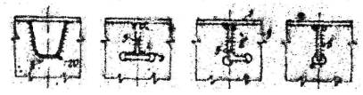 Рис. 3. Продольные ребра коробчатого поперечного сечения. 13. можно применять следующие виды ребер открытого поперечного сечения (расположены в порядке уменьшения степени эффективности): сварные тавры, неравнобокие уголки, простые полосовые ребра. 14. Продольные ребра в виде тавров, получаемых разрезкой прокатных двутавров, и из судовых профилей (например, бульбы) могут применяться при условии стыкования сварной с полным проваром. 15. Продольные ребра из целых прокатных двутавров и швеллеров запрещены п. 483 технических условий СН 200-62 м, кроме того, экономически нецелесообразны. 16. Поперечные балки проектируют открытого поперечного сечения (сварные тавры или двутавры). Их вертикальная жесткость значительно превышает жесткость продольных ребер. Высоту поперечной балки принимают равной 1/8 ÷ 1/12 ее пролета. 17. При членении ортотропной плиты проезжей части на отправочные марки и монтажные блоки следует учитывать, что размеры и вес отправочных марок должны соответствовать возможностям заводского оборудования, железнодорожным габаритам и грузоподъемности погрузо-разгрузочных кранов, а размеры монтажных секций - грузоподъемности монтажного оборудования и способу монтажа. Интересы заводского изготовления требуют возможного уменьшения количества типов отправочных марок. Стыки нужно размещать таким образом, чтобы обеспечить многократную повторяемость одинаковых сборочных процессов. 18. Заводские соединения в секциях стальных отротропных плит должны быть только сварными. 19. Монтажные стыки покрывающего листа (продольные и поперечные) выполняются преимущественно сварными встык с применением подкладных полос. механически обработанные кромки сопрягаемых листов должны строго в пределах допусков соответствовать друг к другу. Подгонка кромок по месту допускается только в порядке исключения. 20. При большой длине монтажных секций, если не удается выдержать допуски на геометрическое очертание кромок, в виде исключения листы могут иметь продольные стыки на высокопрочных болтах (с отверстиями увеличенного диаметра) или клепаные (с рассверловкой отверстия при монтаже). 21. В одноярусных конструкциях продольные ребра пропускаются без стыков сквозь вырезы, предусматриваемые в стенках поперечных балок, и привариваются к ним на заводе валиковыми швами (рис. 4). Стык продольных ребер (как правило монтажный) назначается в пролете между поперечными балкам, желательно вблизи нулевой точки-эпюры моментов, и выполняется обычно сварным. 22. Для сварных стыков продольных ребер в панели рекомендуются следующие решения: а) стык стыковыми швами. Заводские поясные швы сварных продольных ребер в этом случае не доводят до стыкового сечения. их доваривают при монтаже после выполнения стыковых швов. Стык покрывающего листа предусматривается со вставкой, после стыкования продольных ребер; б) стык на накладках, привариваемых валиковыми швами. Горизонтальный лист при этом стыкуется в том же сечении одним стыковым швом (без вставки).