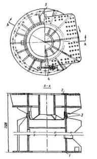 Рис. 5. Разъемный наголовник для оболочек диаметром 1,6 м: 1 - нижняя часть наголовника; 2 - верхняя часть; 3 - зубья; 4 - откидной болт; 5 - ребра жесткости Наголовник позволяет быстро снимать вибропогружатель после окончания погружения оболочки или при перерыве для наращивания ее новой секцией. Для повышения производительности вибропогружателя нижнюю часть наголовника изготовляют в количестве 5-6 шт., которые заранее крепят к оболочкам. Приложение 6ТЕХНИЧЕСКИЕ ХАРАКТЕРИСТИКИ БУРОВЫХ СТАНКОВ