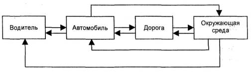Рис. 1.2. Взаимодействие системы "водитель – автомобиль – дорога - окружающая среда" Проблемами рационального использования и охраны геологической среды при дорожном строительстве занимается проф. В.Д. Казарновский. Значительный вклад в изучение проблем взаимодействия дорожно-транспортного комплекса с окружающей средой внес проф. В.К. Курьянов. Большинство из перечисленных работ посвящены учету требований охраны окружающей среды при проектировании автомобильных дорог. Следует отметить, что проводимые в последние годы работы по исследованию загрязнения атмосферы воздуха и почв контаминантами ОГ, поверхностных и грунтовых вод продуктами смыва вредных веществ с поверхности дорог, а также по шумовому и вибрационному воздействию выполняются как частные задачи без учета их совместного влияния. Из-за недостаточного числа изученных функциональных зависимостей взаимодействия дорожного движения с окружающей средой и трудностей, связанных с оценкой взаимного влияния многочисленных вариационных параметров, отсутствует математический аппарат, позволяющий производить адекватную оценку загрязнения и прогнозирование для реальных условий эксплуатации. Экологические недостатки существующей сети дорог в свете концепции ее устойчивого развития диктуют необходимость их постепенного смягчения и устранения в процессе эксплуатации. Необходимость комплексной оценки и прогнозирования процессов воздействия дорожно-транспортной инфраструктуры на природные территориальные комплексы обусловлена увеличением плотности сети автомобильных дорог и потребностью в их качественном улучшении, связанной с возрастанием автомобильных грузовых и пассажирских перевозок. Каждый конкретный природный территориальный комплекс в соответствии с ГОСТ 17.8.1.01-80, включающий в себя геологическую, водную, воздушную сферы, почвы, растительный, животный мир и физические поля, претерпевает изменения различной степени экологической опасности [58]. После развала СССР нарушилось экономическое взаимодействие с бывшими республиками и в России формируются новые связи, поэтому на дорогах, ведущих из центра на юг (магистраль "Дон", автодорога Воронеж-Луганск и др.), произошел рост интенсивности движения, превышающий запроектированный. Эта ситуация ведет к большому экологическому ущербу. Увеличение парка транспортных средств на существующей сети дорог ведет к необратимым экологическим последствиям из-за прямого ущерба и отсутствия прогноза отдаленных во времени последствий эксплуатации дорожно-транспортной инфраструктуры. Ошибочные или недостаточно полные и точные оценки параметров среды при эксплуатации дорожно-транспортных систем объективно приводят к неоправданным затратам. Как показывают исследования отечественных и зарубежных ученых [21, 25-30], наибольшую сложность при оценке состояния окружающей среды в зоне влияния автомобильных дорог и учете отдаленных последствий представляют переход от качественных показателей к количественным и отсутствие единого обобщающего комплексного критерия. Поэтому разработка системного подхода к технико-экологическим показателям для оценки взаимодействия дорожно-транспортного комплекса с окружающей средой является актуальной проблемой. Ее решение осложнено отсутствием методики определения синерг