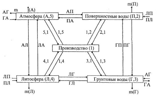 Рис. 11. Система промышленное предприятие - окружающая среда Общая оценка экологической эффективности производства К% (или критерий экологичности процессов) может быть произведена исходя из уравнения