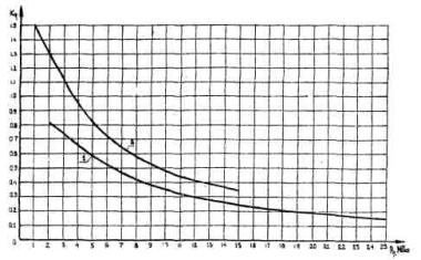 Примечания: 1. Для зданий и сооружений I и II классов значения коэффициента Kq следует принимать в соответствии с данными инженерно-геологических изысканий; 2. Для зданий III и IV классов допускается производить ориентировочное расчленение инженерно-геологического разреза в соответствии с графиком (см. рис. 1); 3. Для промежуточных величин Pq значения коэффициента Kq определяются интерполяцией или по графикам, приведенным в приложении 3.