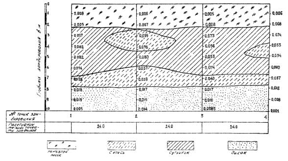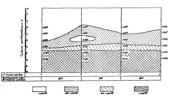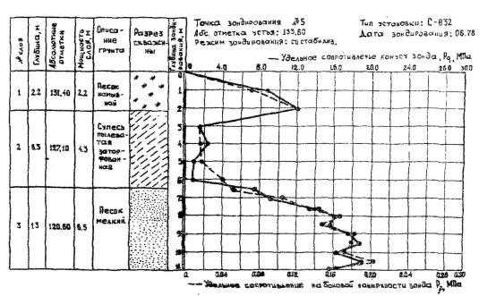 Приложение 9Разрез, построенный по удельному сопротивлению грунта конусу зонда
