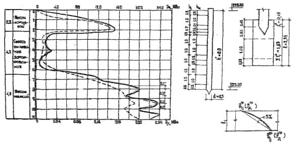 (рис. 1в) определяем среднее значение и) Далее среднее значение удельного сопротивления грунта конусу зонда на участке в уровне острия сваи определяем по формуле 3 п. 3.3: