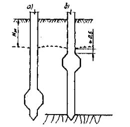 уширением на конце в однородной толще; б - с местным уширением ниже глубины