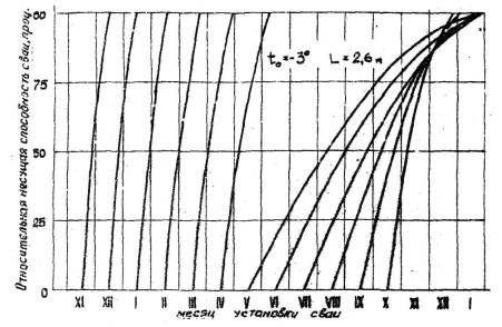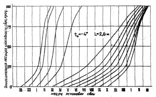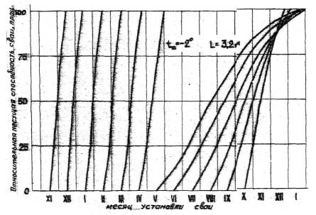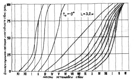 Рис. 1. график для определения роста несущей способности сваи, погруженной в оттаянный паром грунт.