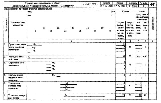 МЕТОДИЧЕСКИЕ РЕКОМЕНДАЦИИ МИНИСТЕРСТВО ТРАНСПОРТА РОССИЙСКОЙ ФЕДЕРАЦИИ Москва 2003 Утверждено распоряжением «Методические рекомендации по проектированию и проверке технически обоснованных норм времени расчетно-исследовательским методом в дорожном хозяйстве» (далее Методические рекомендации) разработаны по заданию Государственной службы дорожного хозяйства Министерства транспорта Российской Федерации специалистами ГП «ЦЕНТРОРГТРУД» А.И. Анашко, А.А. Морозовым. Настоящие Методические рекомендации разработаны с использованием «Руководства по техническому нормированию труда рабочих в строительстве» ВНИПИ труда в строительстве, «Основ методики технического нормирования труда в строительстве» (выпуски 1-9) НИИЭС Госстроя СССР и содержат «Методические рекомендации по проектированию технически обоснованных норм времени в дорожном хозяйстве» и «Методические рекомендации по проверке технически обоснованных норм времени», в которых дается соответственно порядок разработки норм времени и порядок проверки уровня выполнения норм в производственных условиях. Методические рекомендации одобрены Научно-исследовательским институтом труда и социального страхования Минтруда РФ и предназначены для специалистов, занимающихся вопросами технического нормирования в дорожном хозяйстве. Замечания и предложения по данной работе просим направлять по адресу: 115035, г. Москва, Софийская набережная, 34, корп. «В», ГП «ЦЕНТРОРГТРУД». Оглавление ВВЕДЕНИЕОдним из важнейших условий роста производительности труда, экономии материально-технических и финансовых ресурсов является правильно организованное и научно-обоснованное техническое нормирование. В настоящее время роль технического нормирования должна возрастать, так как преимущества внедрения новой техники (в том числе и зарубежной), применения более совершенной технологии могут быть полностью реализованы при точном определении затрат рабочего времени. В строительстве, при ремонте и содержании автомобильных дорог и искусственных сооружений к применению рекомендуются следующие категории норм: • Единые нормы на строительные, монтажные и ремонтно-строительные работы (Е); • Ведомственные нормы на строительные, монтажные и ремонтно-строительные работы (В); • Типовые нормы времени на строительные, монтажные и ремонтно-строительные работы (Т); • Индивидуальные нормы и расценки на строительные, монтажные и ремонтно-строительные работы (ИНиР). Единые, Ведомственные и Типовые нормы являются технически обоснованными и разработаны в централизованном порядке. Индивидуальные нормы, которые разрабатываются и утверждаются самими организациями и предприятиями по согласованию с комитетом профсоюза, также должны быть технически обоснованными. Индивидуальные нормы разрабатываются на производственные процессы, которые отсутствуют в Единых, Ведомственных и Типовых нормах, и могут применяться только в организации, утвердившей их. Руководством по техническому нормированию труда рабочих в строительстве установлены два метода проектирования норм: расчетно-исследовательский и расчетно-аналитический. Расчетно-исследовательский метод основан на использовании данных, получаемых в результате проведения специальных нормативных исследований (замеров, фотохронометрирования и т.д.). 