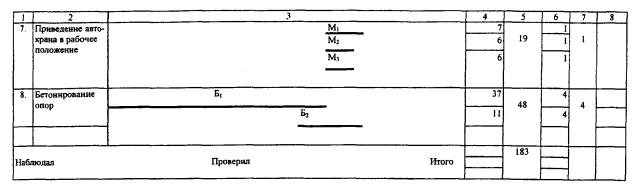 Количество наблюдений, проводимых способом хронометража, определяется также по вышеуказанной таблице. При этом число циклов в каждом наблюдении устанавливается в зависимости от продолжительности цикла: