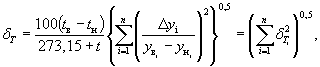 Г.2.1.2 Расчет относительной погрешности измерения температуры выполняют по формулам (Г.3), (Г.4).