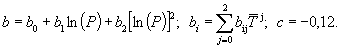 а = а0 + a1 ln (Р) + а2[ln (Р)]2;