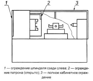 расстоянием до Кабинетное ограждение должно перекрывать пространство от торца шпинделя изделия до торца задней бабки при ее расположении на конце станины; d) для станков типа 2 с межцентровым