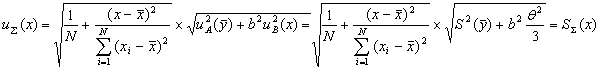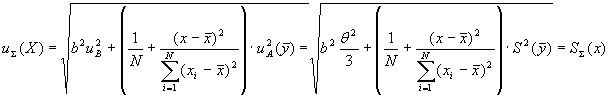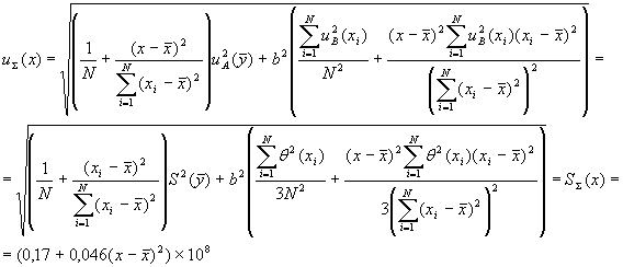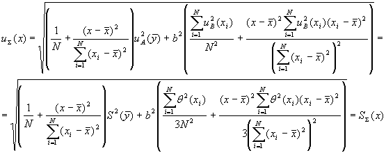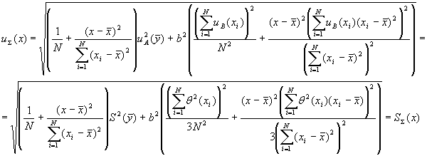 где θ (х) - границы абсолютных погрешностей градуировочных смесей в точке х. 4.5.2 Если корреляция погрешностей градуировочных смесей присутствует и характеристики абсолютных погрешностей градуировочных смесей остаются постоянными на всем диапазоне изменения входной величины, то СКО погрешности (суммарную стандартную неопределенность) построения ГХ СИ вычисляют по формуле: