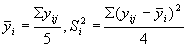 Средние значения выходного сигнала в i-й точке |