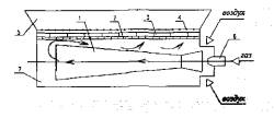 Рис. 1. Схема "светлого" газового инфракрасного излучателя (ГИИ-С): 1 - инжектор; 2 - рассекатель; 3 - керамические плитки; 4 - металлическая сетка-экран; 5 - рефлектор, 6 - газовое сопло; 7 - распределительная камера