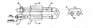 Рис. 2. Схема "темного" газового инфракрасного излучателя (ГИИ-Т) 1 - газогорелочный блок; 2 - излучающая труба; 3 - вентилятор; 4 -рефлектор