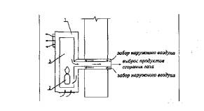 Рис. 4. Схема газового конвектора (ГК): 1 - корпус отопительного прибора; 2 - газовая горелка; 3 - камера сгорания