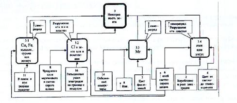 1. Для удаления марганца разряжают, электролит заменяют свежим и заряжают. В случае неблагоприятного анализа - повторить. 2. Для удаления железа аккумулятор разряжают, сливают электролит, промывают, заполняют электролитом ρ = 1,04-1,06 г/см3 и заряжают до получения неизменных значений U и ρ электролита. Электролит выливается, заменяется новым электролитом 3. ρ = 1,20 г/см3 и заряжают до U - 1,8 В. При необходимости - повторить. 4. Медь не выводится. Меняют пластины. 5. Азот попадает в электролит в виде амиака, вызывает повышенный саморазряд. Сам выводится. 6. Хлор выводится после 3.4 циклов заряда и разряда сам.