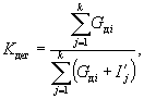 где Ii - метановыделение на участке из i-го источника метановыделения, м3/мин; I - метанообильность выемочного участка, м3/мин. Значения пi, Ii, I устанавливаются согласно нормативному документу по проектированию вентиляции угольных шахт. 5. Коэффициент дегазации i-го источника метановыделения kд i, доли ед., рассчитывается по формуле