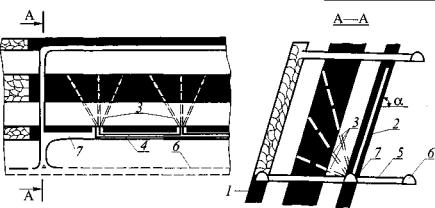 пробуренными веером в плоскости крутого пласта: