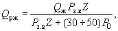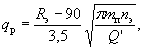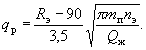 где Рз.в - давление закачки газообразного агента, МПа; Р0 - атмосферное давление, МПа; Z - коэффициент сжимаемости газа, принимается по таблицам в зависимости от давления нагнетания. 30. Рабочий темп закачки qр, м3/с, жидкости в последнем цикле, обеспечивающий необходимый радиус обработки, определяется по формуле