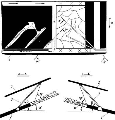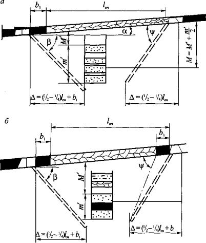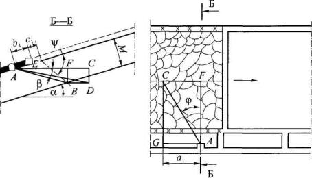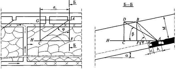 R1, R2 - большая и малая полуоси зоны гидрорасчленения угольного пласта соответственно, м; rc - расстояние между скважинами, пробуренными на пологие подрабатываемые пласты вкрест их простирания, м; rc.к - расстояние между скважинами, пробуренными на сближенные крутые пласты, м; S - сечение выработки для прохода воздуха, м2; Sп - площадь сечения замерного устройства, м2; t - продолжительность дренирования пласта скважинами, сут; t' - время, отсчитываемое с начала бурения скважин на дегазируемом участке разрабатываемого пласта, сут; tб - время обуривания дегазируемого участка разрабатываемого пласта, сут; t'б - время, отсчитываемое с начала обуривания участка разрабатываемого пласта, сут; tб.г - время, необходимое для монтажа станка, бурения, герметизации и подключения скважин к газопроводу, сут; tг - время работы насоса для нагнетания жидкости в пласт, ч; t0 - температура газа перед диафрагмой, °С; tгаз - инерционность комплекса газоанализатора, с; tк.о - инерционность клапана-отсекателя, с; Тв - температура нагнетаемого воздуха, °С; Тпл - температура пласта после нагнетания воздуха, °С; То - природная температура пласта, °С; DТпл - прирост температуры пласта в результате нагнетания воздуха, °С; V - объем закачиваемого в массив газообразного рабочего агента, м3; Vdaf - выход летучих веществ, %; Vг - объем газового тракта от места отбора пробы газа до входа в газоанализатор, м3; v - скорость движения воздуха в выработке, м/с; vоч - скорость подвигания очистного забоя, м/сут; vп - измеренная скорость потока газовой смеси, м/с; х - природная метаноносность угольного пласта, м3/т, либо на тонну сухой беззольной массы, м3/т с.б.м.; хм - условная величина, используемая для определения (выбора) наиболее трудного маршрута по условиям транспортирования каптируемой газовоздушной смеси, мм рт. ст.×мин2/м7; Z - коэффициент сжимаемости газа; z - разность отметок ветвей газопровода, м; a - угол падения пласта, град; a' - угол падения пласта в плоскости скважины, град; aр - коэффициент расхода; b - угол возвышения скважины (наклона скважины к горизонту), град; b' - проекция угла наклона скважины на вертикальную плоскость, проходящую через линию падения пласта, град; bл - эмпирический коэффициент; bп - коэффициент, учитывающий мощность угольных пачек пласта; g - объемная масса угля, т/м3; g' - объемная масса газа в рабочем состоянии при фактической концентрации метана, кг/м3; gн - объемная масса газовой смеси при фактической концентрации метана, давлении 760 мм рт. ст. и температуре 273 К (плотность смеси), кг/м3; gн i - средняя плотность метановоздушной смеси в/-й ветви газопровода, кг/м3; g'н - плотность газа, приведенного к нормальным условиям, при расчетной концентрации метана, кг/м3; gн 1-2 - средняя плотность метановоздушной смеси в ветви 1-2, кг/м3; D - расстояние по разрабатываемому пласту от проекции на него забоя скважины, пробуренной на подрабатываемый пласт, до границы разгруженной зоны у выработки, м; l - угол между осью выработки и проекцией скважины на плоскость пласта, град; t - продолжительность дегазации пласта скважинами, сут; t' - время дегазации, отсчитываемое с момента окончания буровых работ на дегазируемом участке разрабатываемого пласта, сут; j - угол между проекцией скважин на горизонтальную плоскость и перпендикуляром к оси выработки в той же плоскости, град; y - угол разгрузки пород кровли, град; y' - угол раз