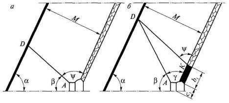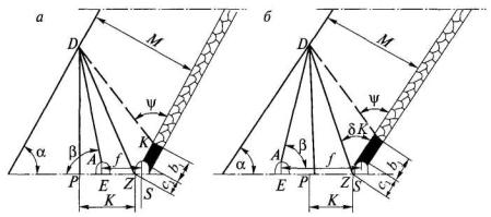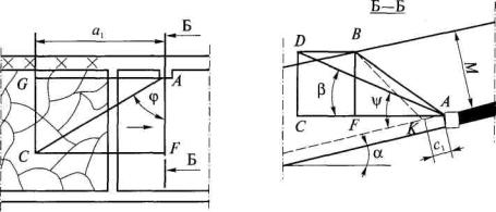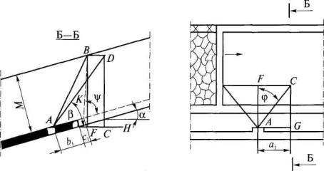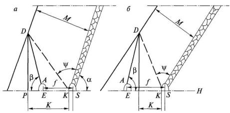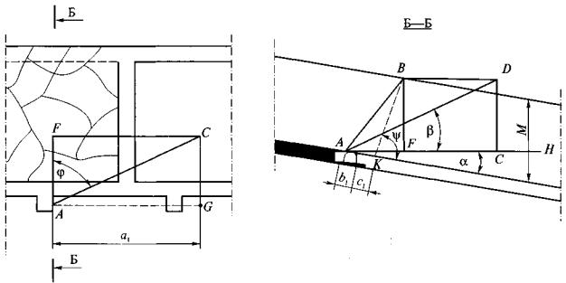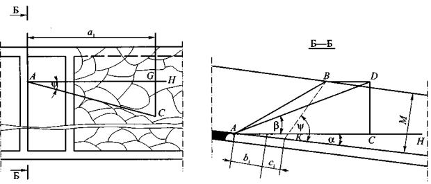 4. Величина коэффициента а принимается по фактическим данным или определяется по формуле а = b - с'Vdaf, (5) где b и с' - эмпирические коэффициенты, значения которых составляют при Vdaf £ 25 % 0,042 и 8,8×10-4 соответственно, а при Vdaf > 25 % - 0,025 и 3,9×10-4 соответственно; Vdaf - выход летучих веществ, %. 5. Значения показателей газоотдачи пласта g0 и а, рассчитанные по формулам (3) и (5), подлежат корректировке по мере накопления данных о метановыделении в скважины или группу скважин. 6. Показатели газоотдачи угольных пластов в скважины целесообразно определять до начала дегазационных работ по материалам газовоздушных съемок, которые необходимо проводить в тупиковых подготовительных выработках на подлежащем дегазации выемочном поле, участке. 7. Расстояние Rк, м, между кустами восстающих или горизонтальных перекрещивающихся скважин (одна скважина пробурена параллельно очистному забою, другая - ориентированно на забой лавы с углом встречи 30-35°) рассчитывается по формуле Rк = kи Rc, (6) где kи - коэффициент интенсификации выделения метана в перекрещивающиеся скважины, рассчитывается по формуле (здесь f - крепость угля по М.М.Протодьяконову). 8. Углы заложения скважин, ориентированных на очистной забой, определяются по формулам, приведенным в табл. 1. Таблица 1 Углы заложения ориентированных на очистной забой скважин, пробуренных из участковой выработки