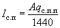 где rуд - плотность угля, т/м3; Ск - содержание карбонатов в фильтрующих каналах, доли ед.; qуд - удельный расход 100 %-ной соляной кислоты на 1 т карбонатов, принимается равным 0,73 т/т; Скт - концентрация товарной кислоты (Скт = 26 %); km - коэффициент, учитывающий сорбцию и скорость реакции соляной кислоты с карбонатами (km = 0,02); kи.н - коэффициент, учитывающий интерференцию скважин и неравномерность обработки массива (kи.н = 0,8). 24. Объем кислотного раствора (Qкт, м3, с рабочей концентрацией Ср, равной 4 %, составляет
