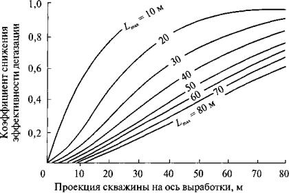 (здесь lс - длина скважины, м; lг - глубина герметизации устья скважины, м); тд и т - дегазируемая скважинами и полная мощность угольных пачек пласта соответственно, м; g0 - начальное удельное метановыделение в скважину, м3/(м2×сут); а - коэффициент, характеризующий темп снижения во времени газовыделения из пласта в скважины, сут-1; t - продолжительность дегазации пласта скважинами, сут; lоч - длина лавы (очистного забоя), м; g - объемная масса угля, т/м3;