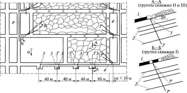 Рис. 15. Схема дегазации свиты крутых пластов скважинами,