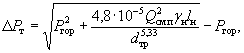 (здесь a - коэффициент, учитывающий сопротивление аппаратуры. Принимается равным 0,011 или 0,007 при диаметре газопровода 25 или 30 см соответственно; gн - плотность метановоздушной смеси, кг/м3); DРд - потери давления газа при прохождении через диафрагму, принимаемые при проектировании 8 мм рт. ст., а на действующих установках - по показаниям приборов; DРт т - потери давления на трение газа в нагнетательном газопроводе, мм рт. ст.