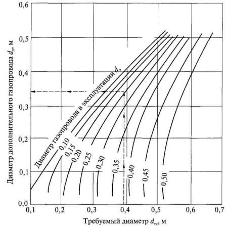 Рис. 5. Определение диаметра дополнительного газопровода 43. Уточняется