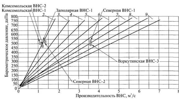 Рис. 6. Характеристики вакуум-насосных станций