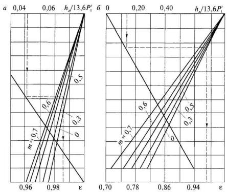 Рис. 3. Определение коэффициента е при малых (а) и при больших (б) значениях hд/13,6Р'1