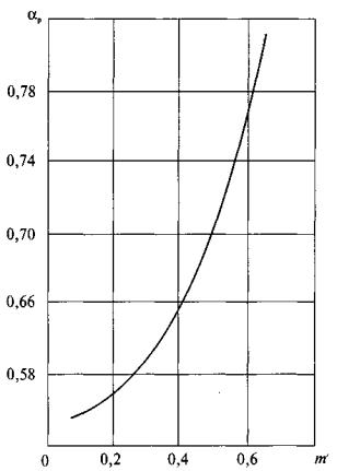 Рис. 5. Зависимость коэффициента расхода ap от На упомянутых выше номограммах приняты следующие обозначения: Р'1 - давление газа в газопроводе, то есть разность между атмосферным давлением у места установки диафрагмы и разрежением в газопроводе перед диафрагмой, мм рт. ст.; ap - коэффициент расхода,
