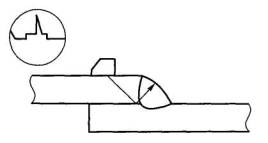 Вероятность потери сварным соединением работоспособности П и ожидаемой доли брака Б для вышеприведенных норм допустимости пор соответствует принятым нормативным значениям: П < 10-5 - 10-4 и Б ≤ 3·10-3 - 10-2. Следует отметить, что угловые деформации и смещения кромок, в том числе и допустимые по ГОСТ 5264-60, ГОСТ 8713-79 и ГОСТ 14771-76, приводят к резкому увеличению концентрации напряжений, вызываемой формой шва, и, следовательно, к уменьшению опасности дефектов. Для разработки базовых справочных данных по уровням качества сварных соединений рекомендуется использовать EN 25817 (ИСО 5817). Данные нормы устанавливают три уровня качества, обозначенные как D - низкий, С - средний и В - высокий. Следует отметить, что применяемые в EN 25817 (ИСО 5817) показатели существенно отличаются от показателей, используемых в отечественных нормативных технических документах. Вместо катета в угловых швах нормируется высота рабочего сечения (высота наибольшего равнобедренного треугольника, который можно вписать в сечение сварного шва), а изготовляемые в России специальные шаблоны для измерения сварных швов позволяют измерять катеты швов. В EN 25817 (ИСО 5817) введены понятия «коротких» (один дефект или более общей длиной не более 25 мм на каждые 100 мм длины сварного шва или максимум 25 % длины при его длине менее 100 мм) и «длинных» (один дефект или более общей длиной более 25 мм на каждые 100 мм длины сварного шва или минимум 25 % длины при его длине менее 100 мм) дефектов. Данные показатели не зависят от видов дефектов (включения, поры, непровары, подрезы и т.д.) и практически не связаны с опасностью дефектов, так как опасность наиболее значимых плоскостных дефектов (непроваров, подрезов) определяется прежде всего их глубиной, а не длиной. В EN 25817 (ИСО 5817) применяется практически нереализуемый параметр оценки допустимости пористости - относительная суммарная площадь пор в сечении сварного шва в процентах. Рассчитать этот параметр чрезвычайно сложно. Регламентируется глубина проплавления в угловых швах, которую невозможно оценить методами неразрушающего контроля. Имеет место ошибочная интерпретация вида дефекта. В сварном соединении, приведенном на рис. 3.12, наряду со смещением кромок, как это указано в EN 25817 (ИСО 5817), имеется более опасный дефект - непровар по кромке свариваемого элемента [наличие непровара в EN 25817 (ИСО 5817) не отмечается].