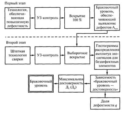 Рис. 4.13. Схема выбора браковочного уровня при ультразвуковом контроле угловых сварных швов